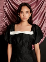 Black Floral Jacquard Mini Dress with Bow Trim