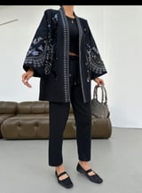 Black Embellished Shrug With Intricate Sequin Detailing And Flared Sleeves