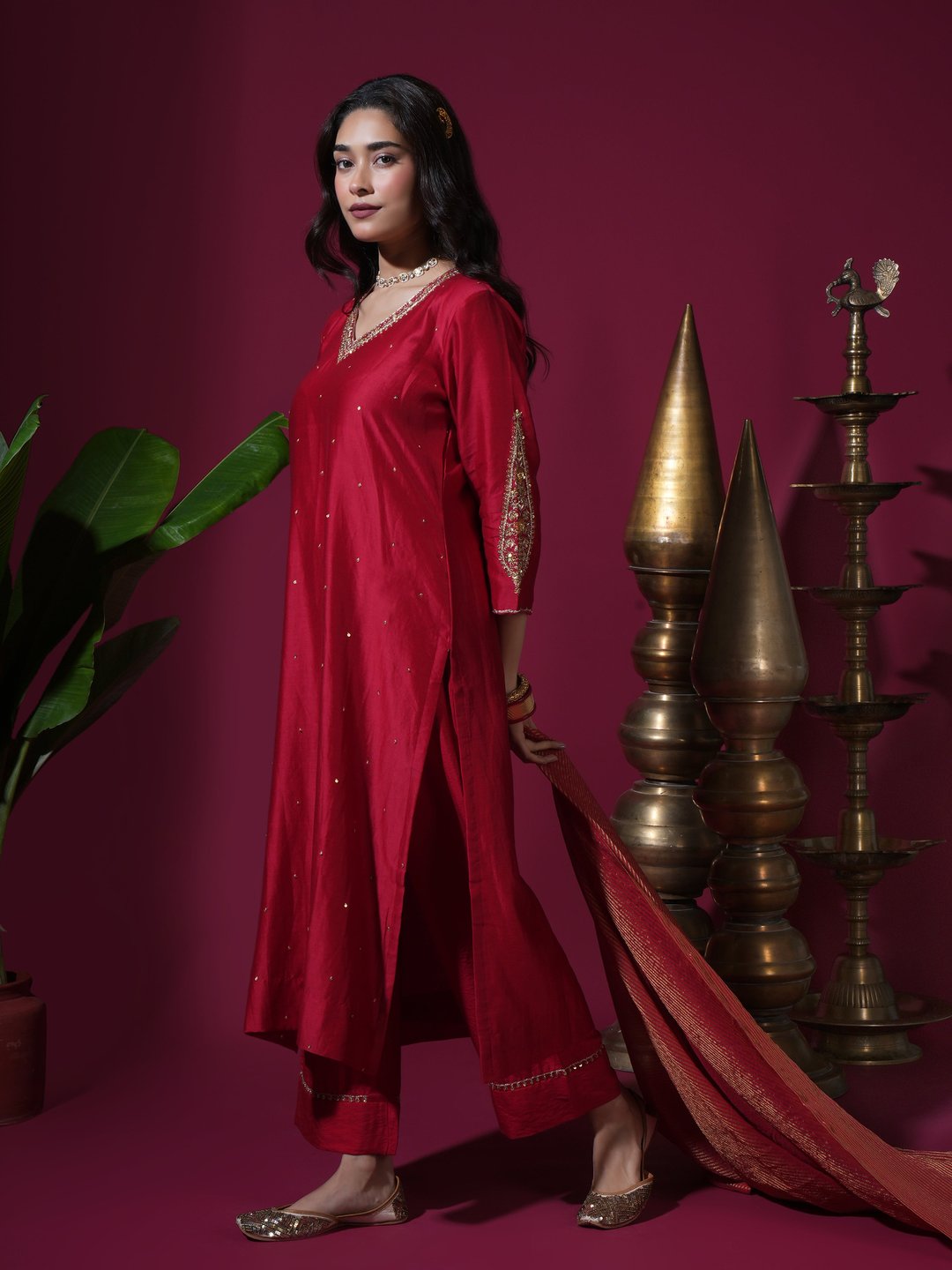 Red Asopalav Long Kurta Set