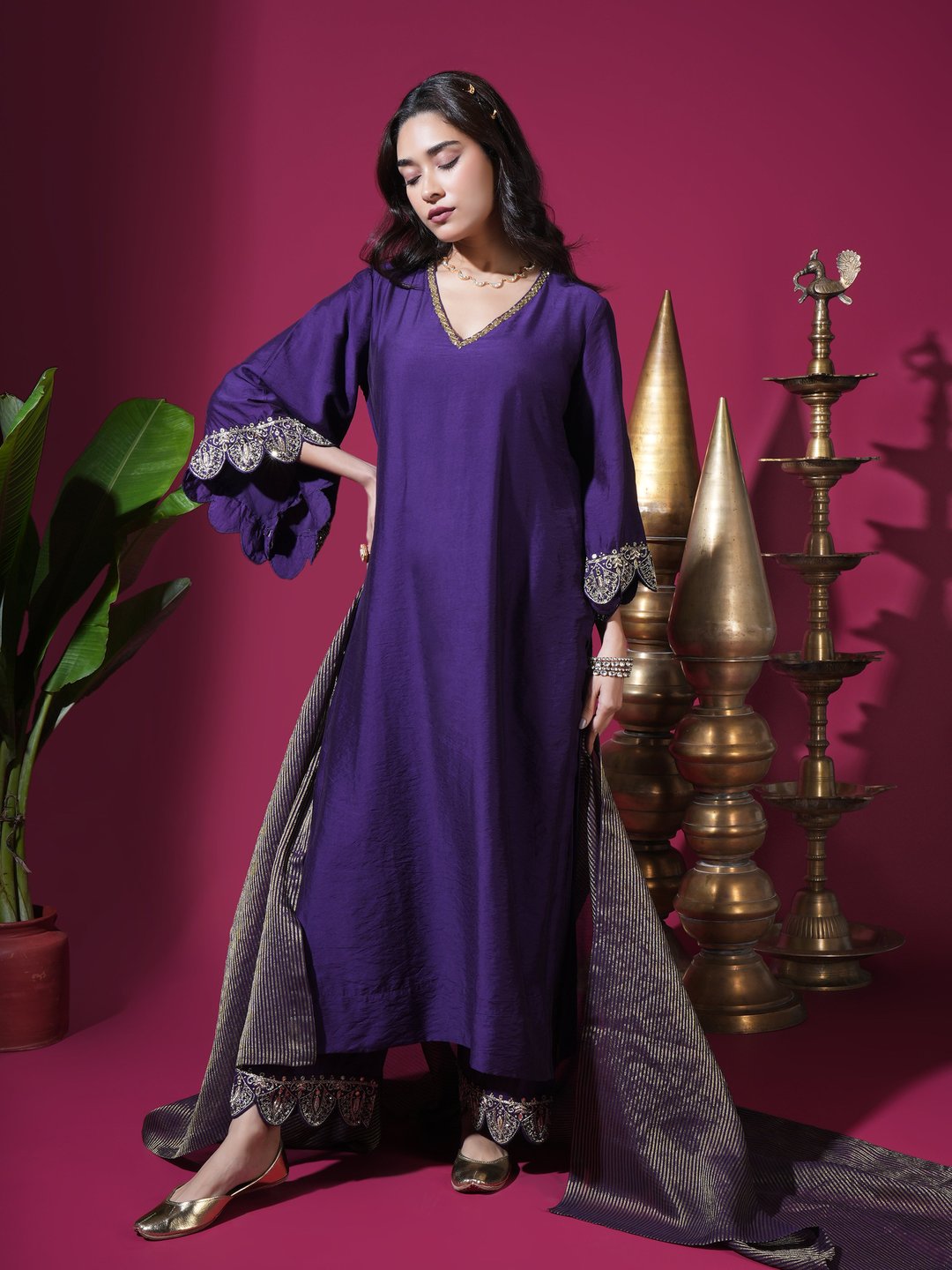 Deep Purple Scallop Kurta Set