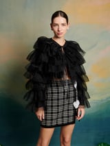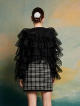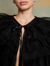 Black Cropped Tulle Ruffle Jacket with Tie-Up Neck