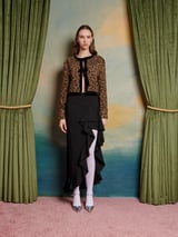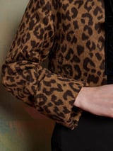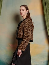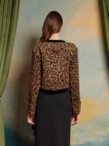 Brown Leopard Print Cropped Cardigan with Velvet Bow Ties