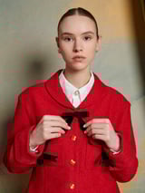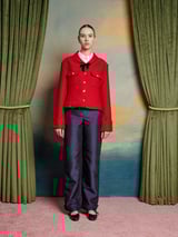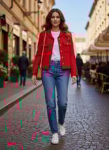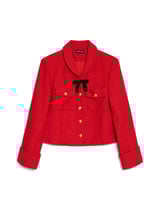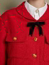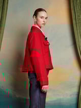 Red Cropped Textured Jacket with Gold Buttons