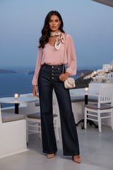 Dark Wash High-Rise Wide-Leg Jeans with Button Fly