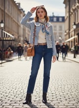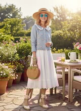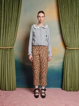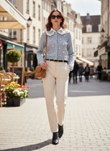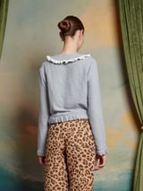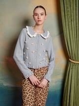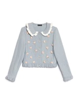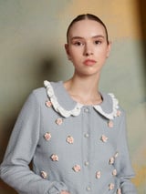Grey Cropped Cardigan with Ruffle Collar and Rosette Appliqué