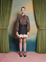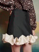 Black and White High-Waisted Mini Skirt with Ruffle Hem