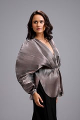 Gunmetal V-Neck Peplum Top