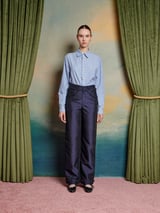 Blue Pinstripe Shirt with Beaded Cherry Placket