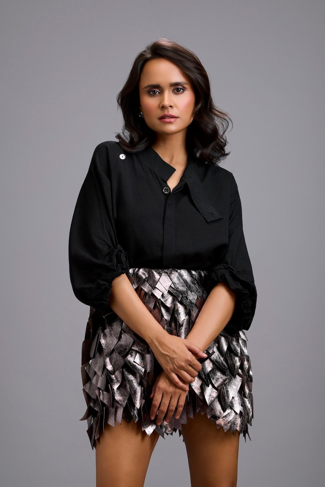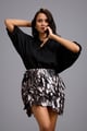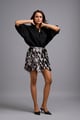 Metallic Mini Skirt with 3d Leaf Appliqu�