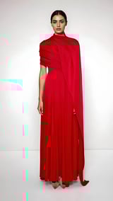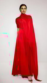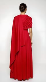 Scarlet Pleat Cape Gown