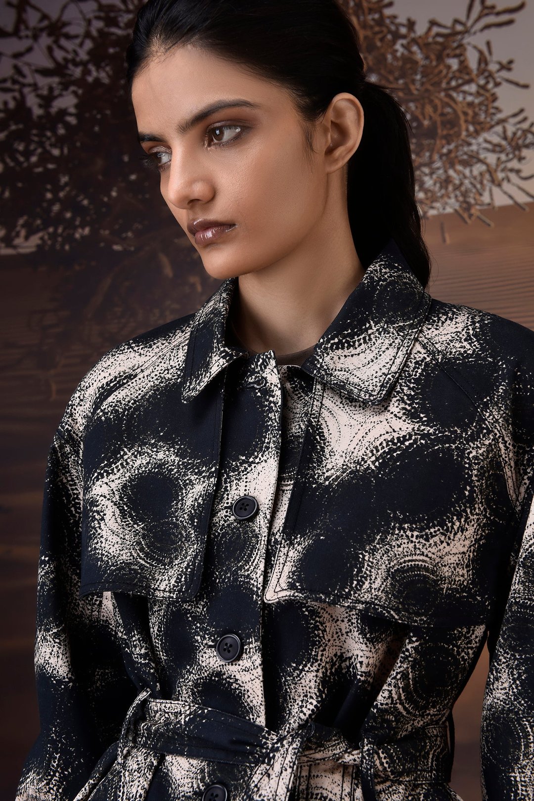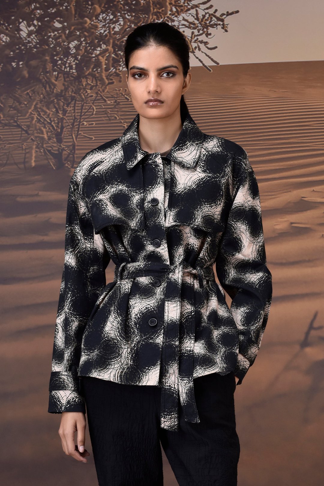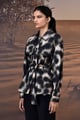 Black Abstract Circle Print Cotton Twill Jacket