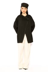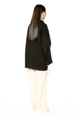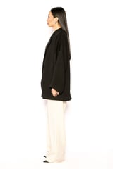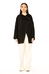 Black Oversized Wrap-Front Jacket with Statement Button