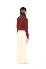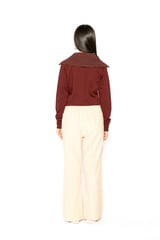 Wine Sailor Collar V-Neck Long Sleeve Pullover Top