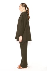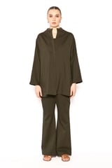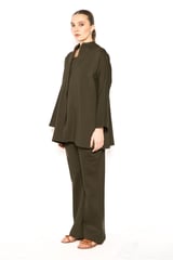 Olive Green Longline Zip-Front Jacket with Mandarin Collar