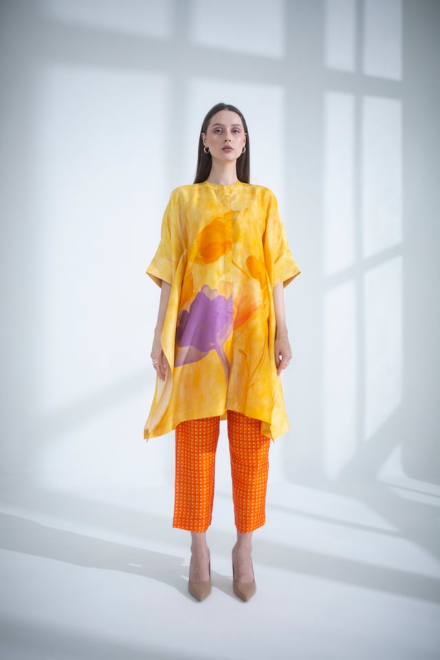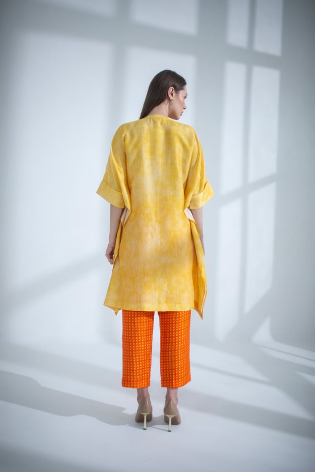 Yellow & Orange Asymmetric Kurta Set