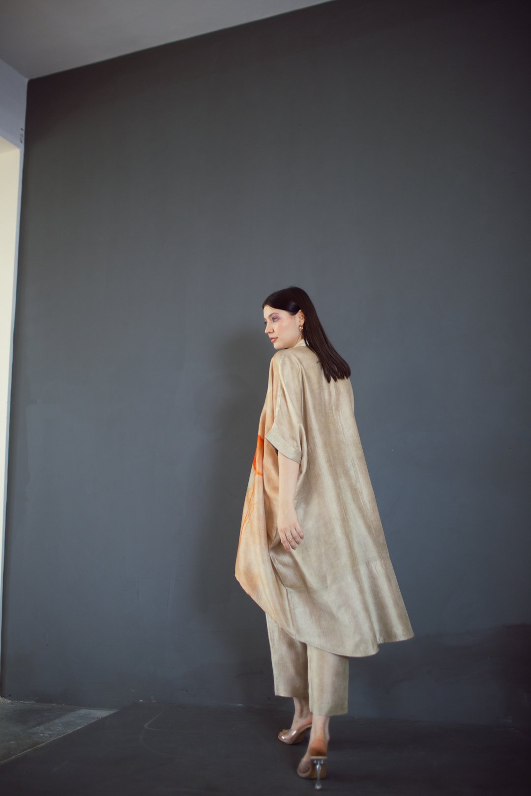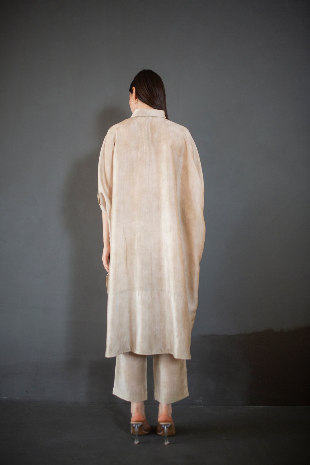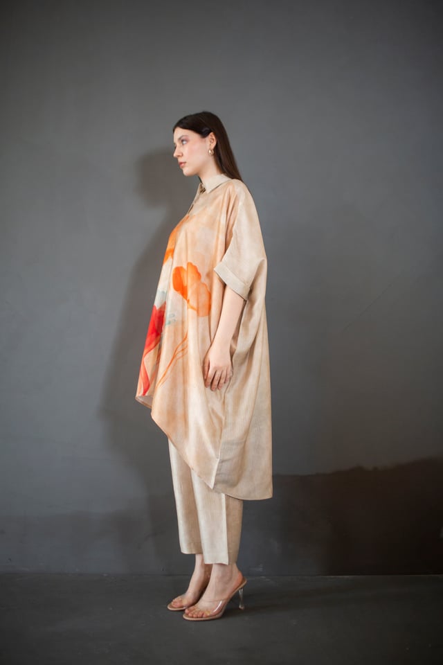 Beige High Low Kaftan Set