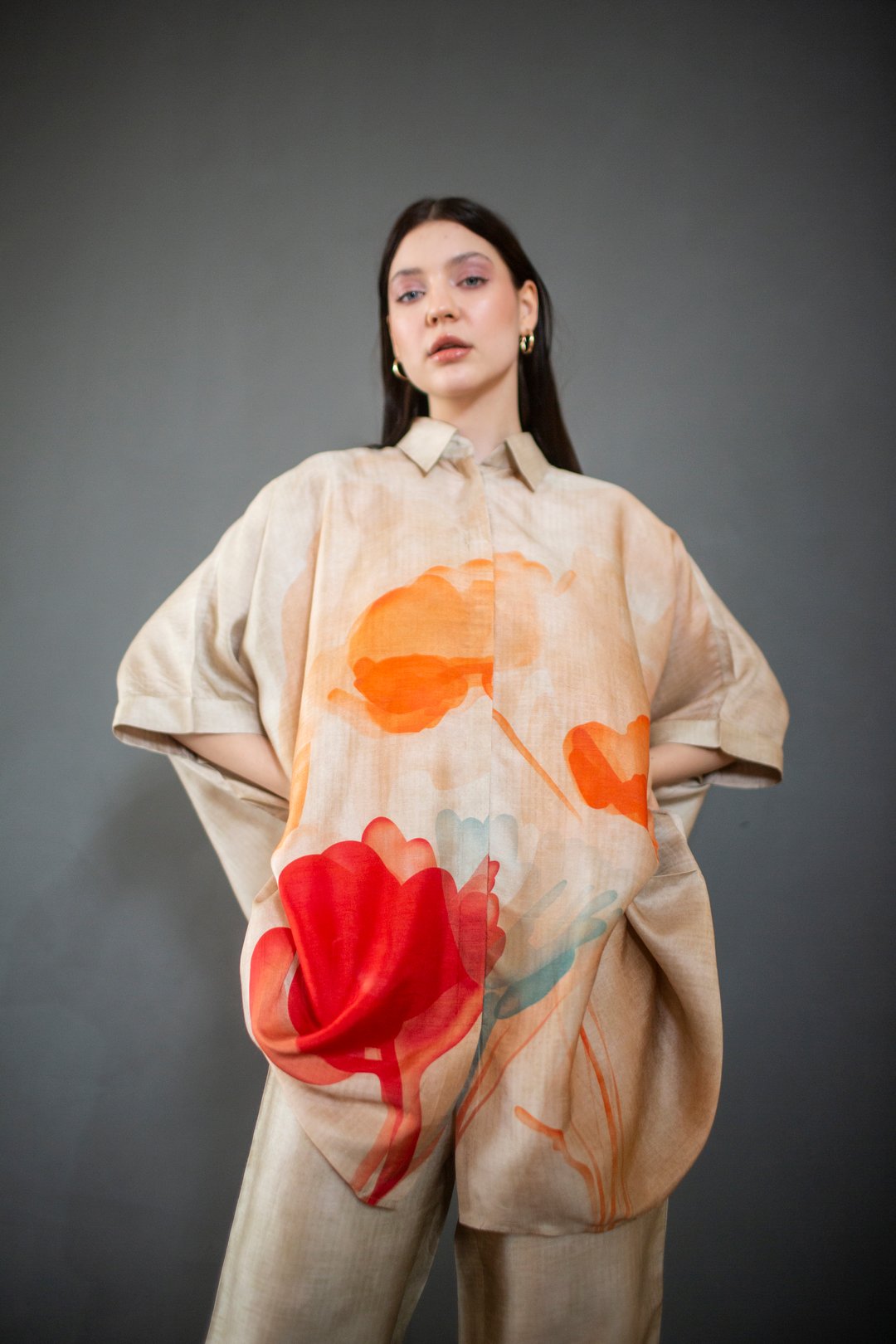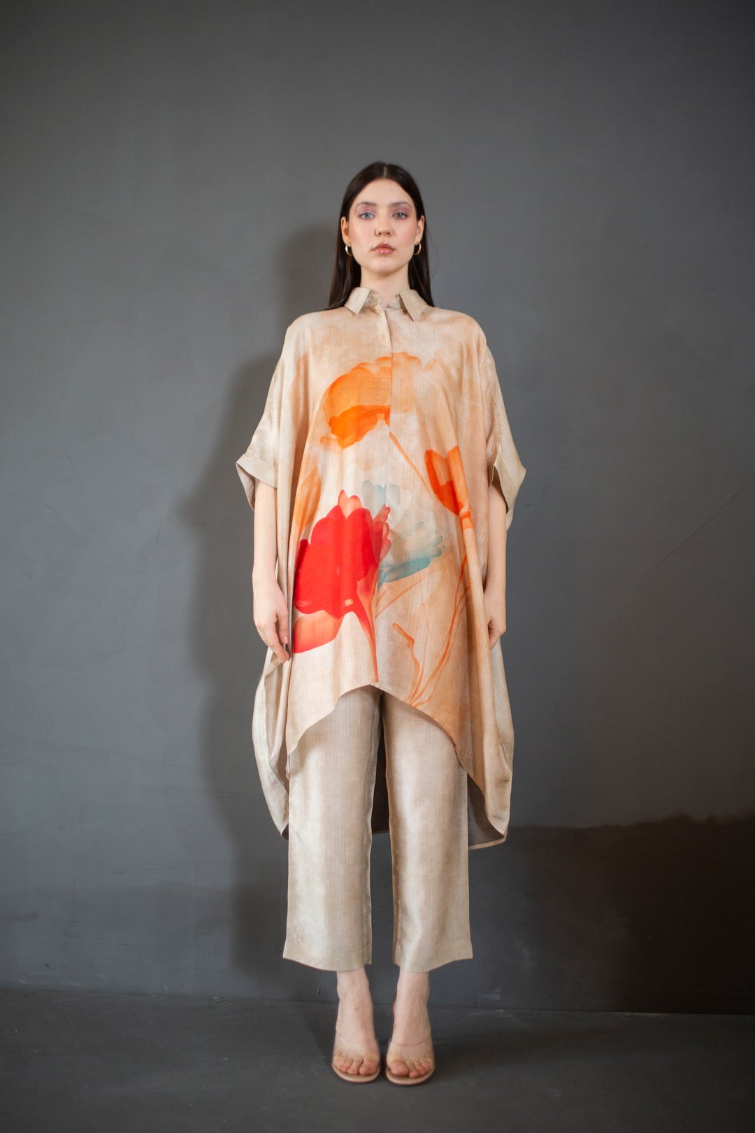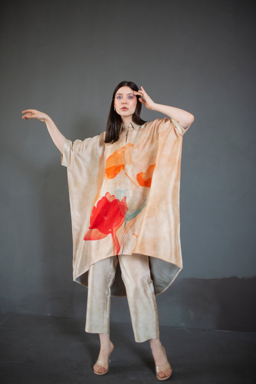 Beige High Low Kaftan Set