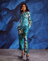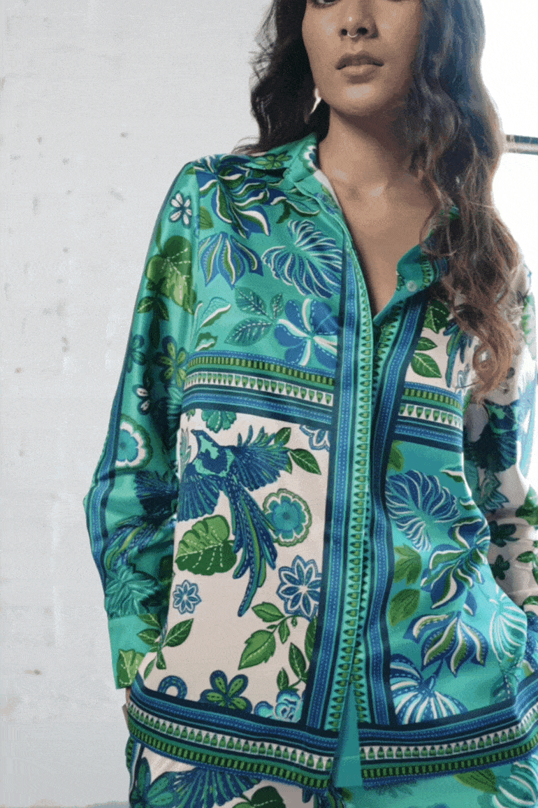 Teal Multi Tropical Placement Print Relaxed Fit Shirt