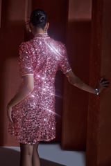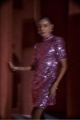 Cosmos Pink All-Over Sequin High Neck Mini Dress