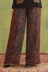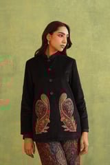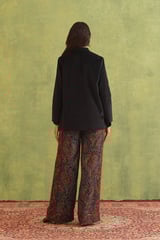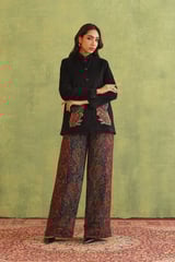 Black Corduroy Mandarin Collar Co-ord Set with Paisley Pants