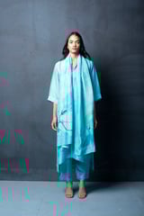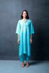 Navy Blue Habutai Silk Kurta Set
