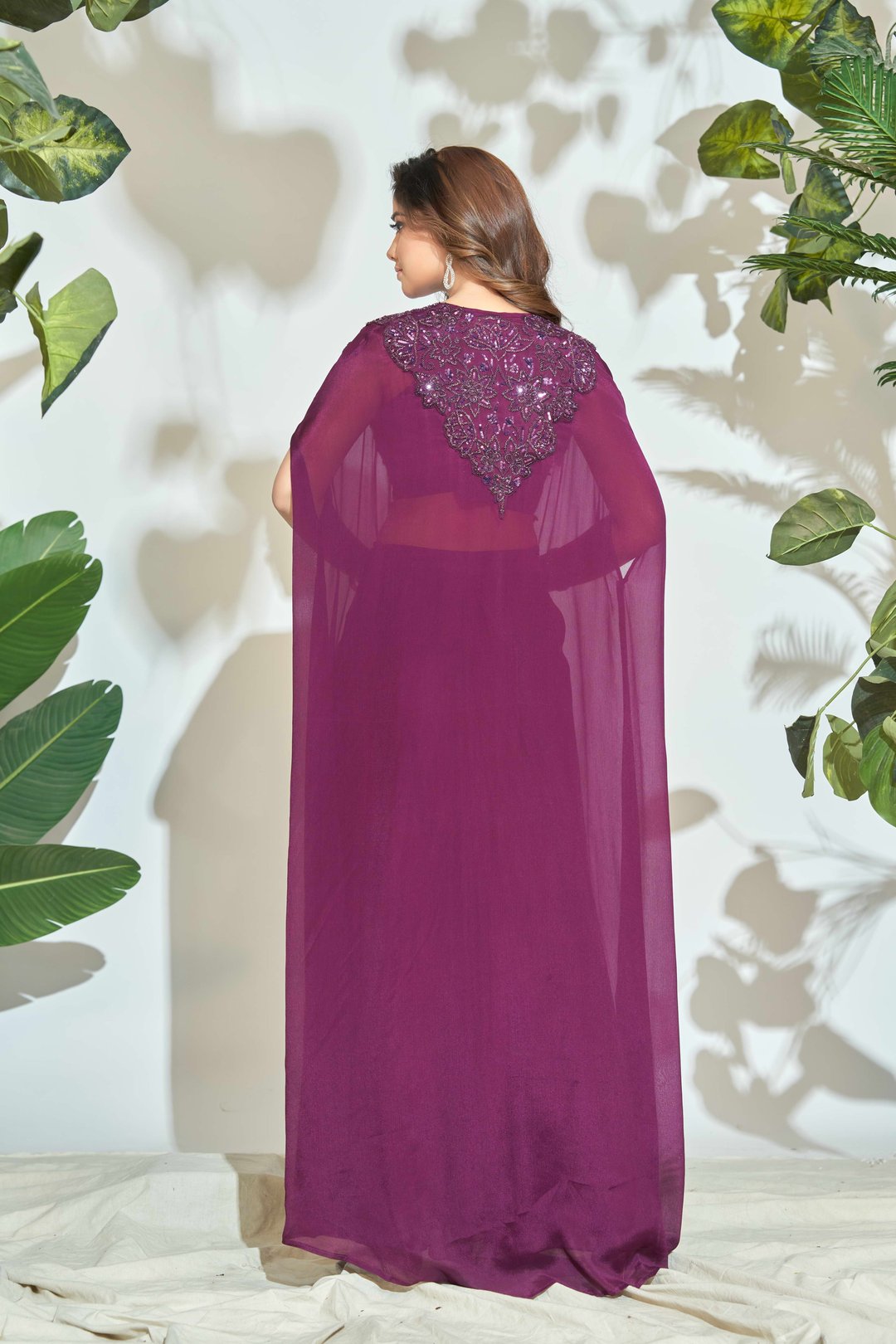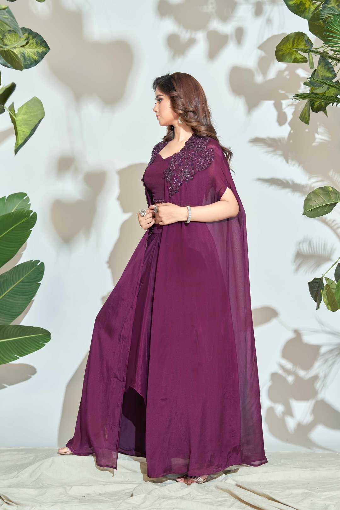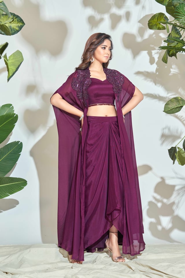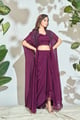 Chiffon Hand Work Shrug with Pleated Skirt & Top Set