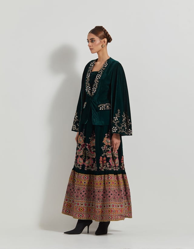 B. Green Jacket & Skirt