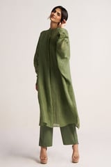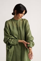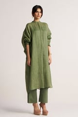 Hedge Green Zari Stripe Kurta and Palazzo Co-ord Set