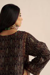Black Printed Silk Co-ord Set with Wide-Leg Palazzo