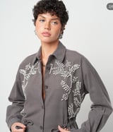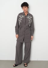 Grey Embellished Shirt and Wide-Leg Pants Co-ord Set