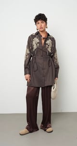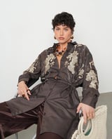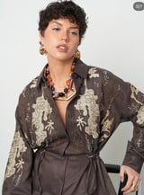 Embellished Brown Shirt Dress With A Drawstring Waist