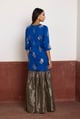 Zero Neck Short Kurta with Silver Tissue Sharara