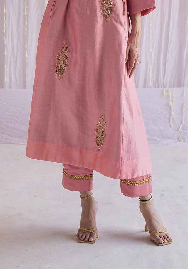 Tannu Kurta in Gulab Pink Chanderi with Pants
