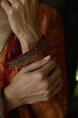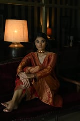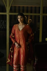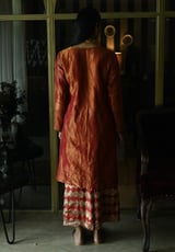 Zeenat Kurta Rust Red Tissue Red Brocade Pallazzo