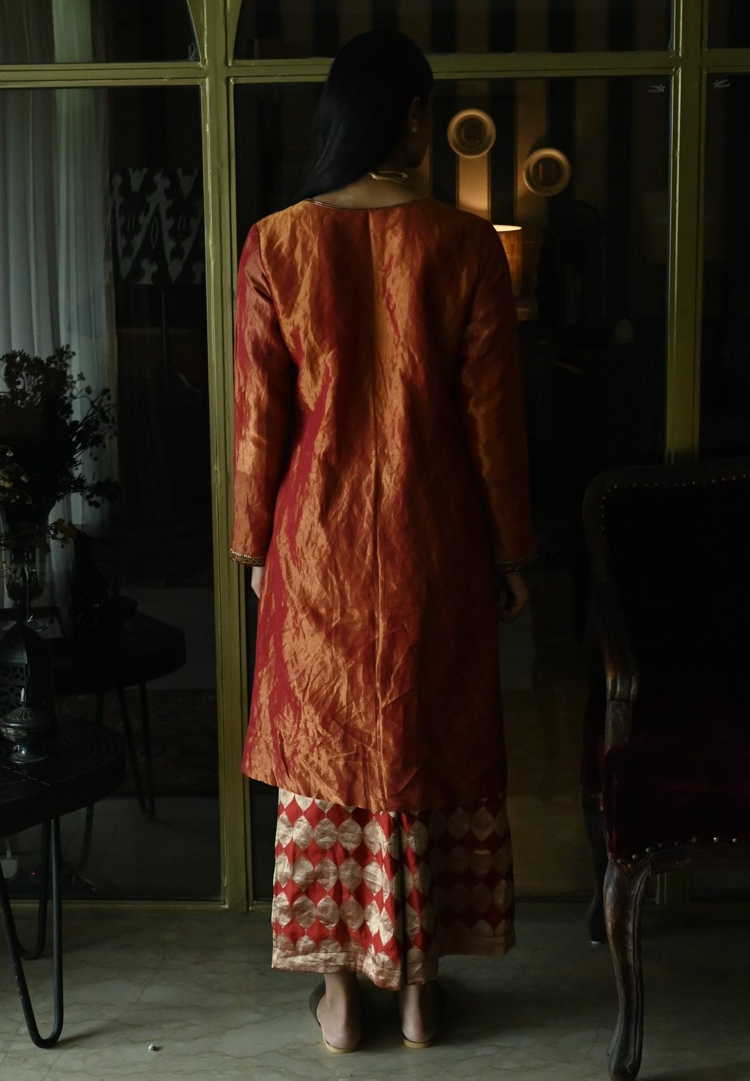 Zeenat Kurta Rust Red Tissue Red Brocade Pallazzo