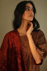 Stole In Red Velvet With Zari Scallope