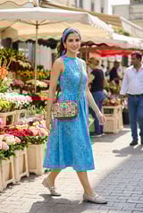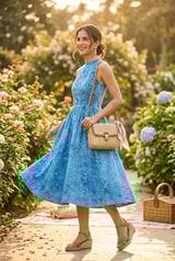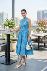 Blue Washed Denim Halter Neck Fit and Flare Midi Dress