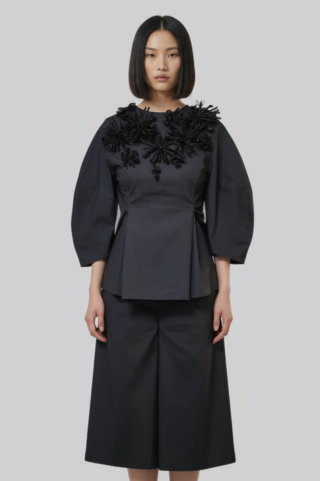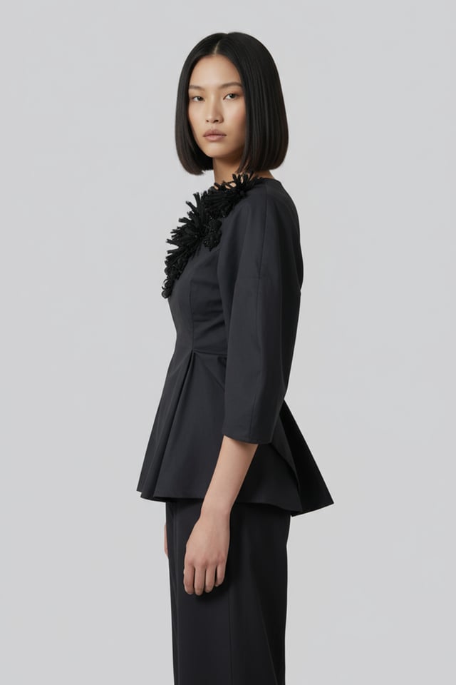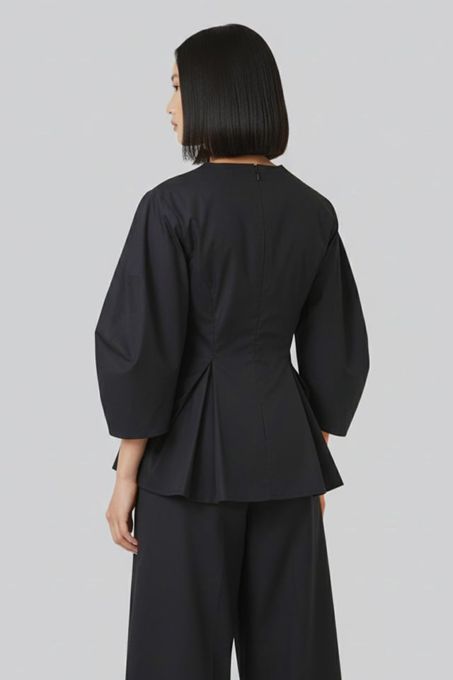 Black Cotton Poplin Top