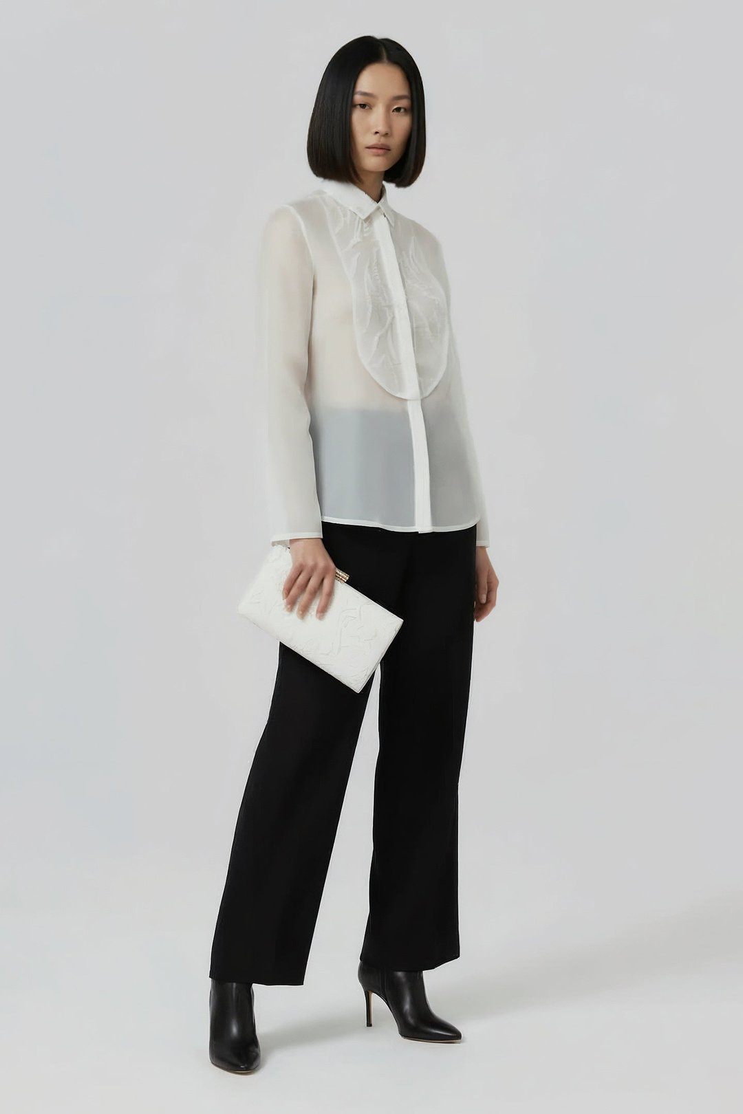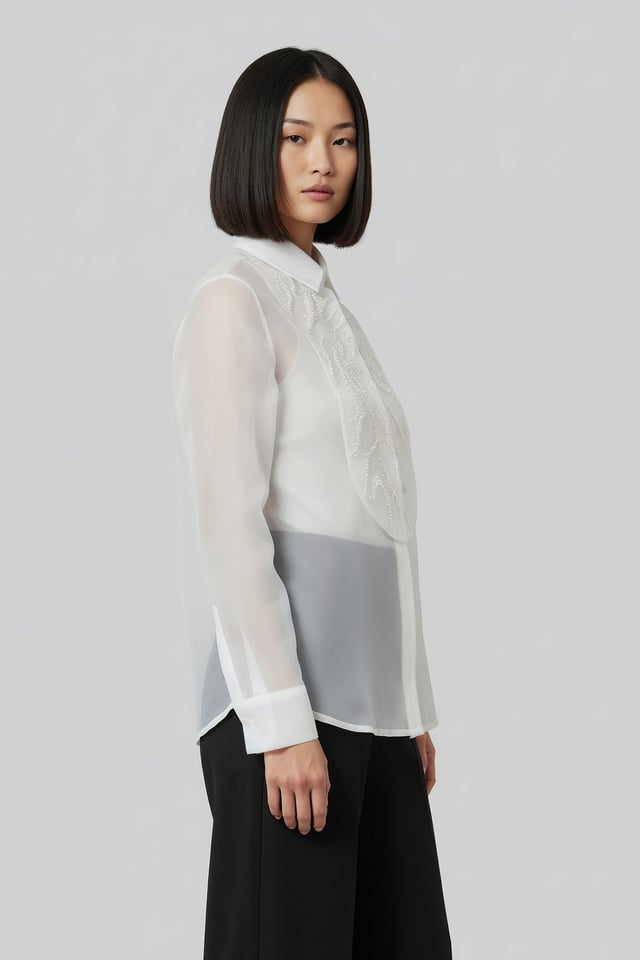 White Embroidered Sheer Shirt