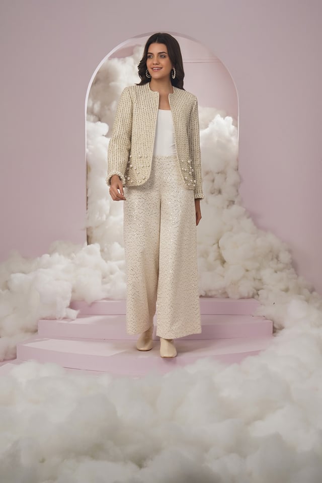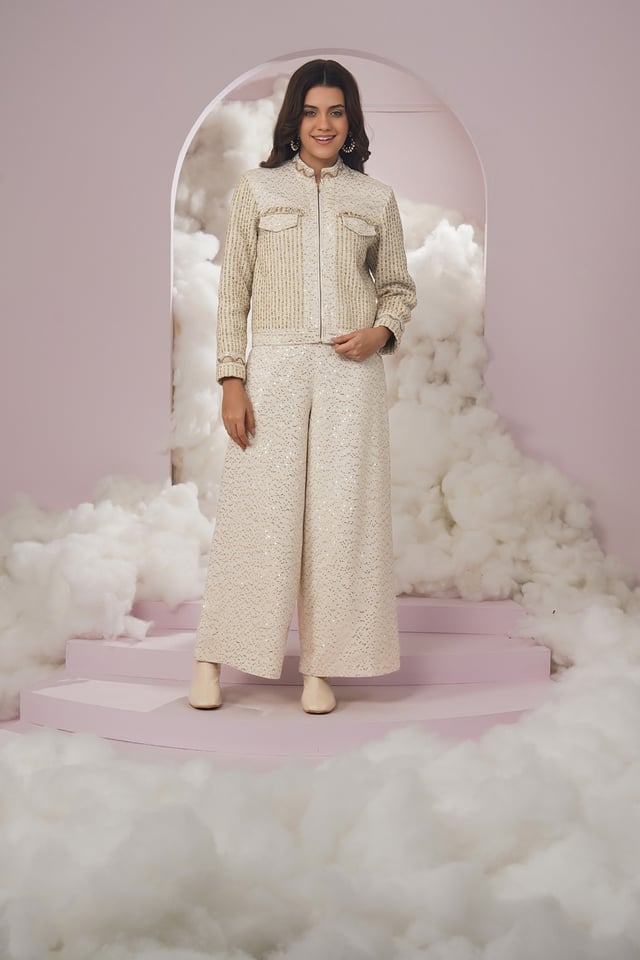 La Swiss Pants- White Sequence