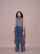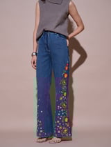 Blue High-Rise Straight-Leg Jeans with Side Floral Embroidery