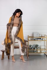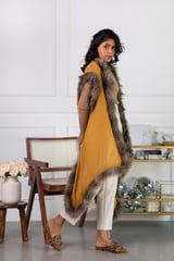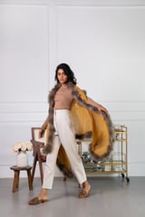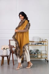 Ochre Wool Cape with Faux Fur Trim