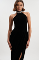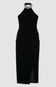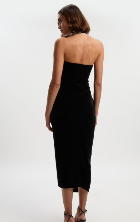 Tailored Velvet Halter Embellished Neck Midi Dress