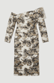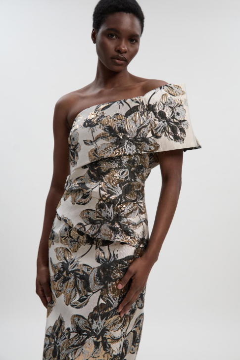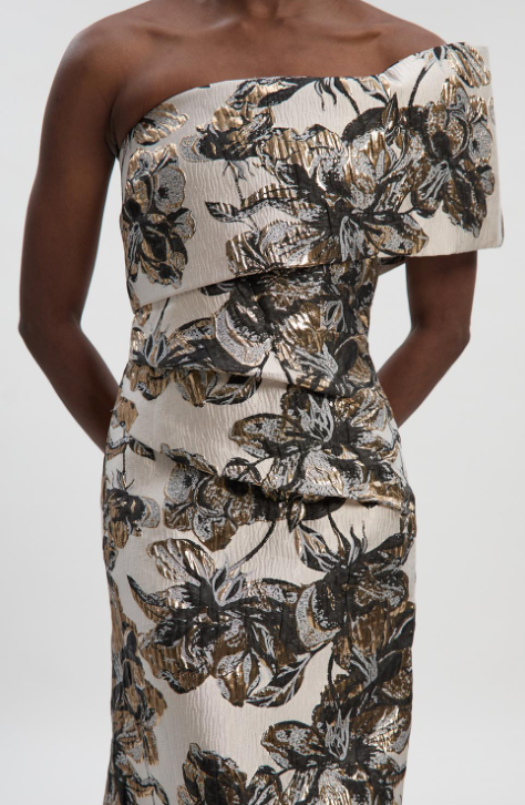 Floral Jacquard Asymmetric Neck Pencil Dress