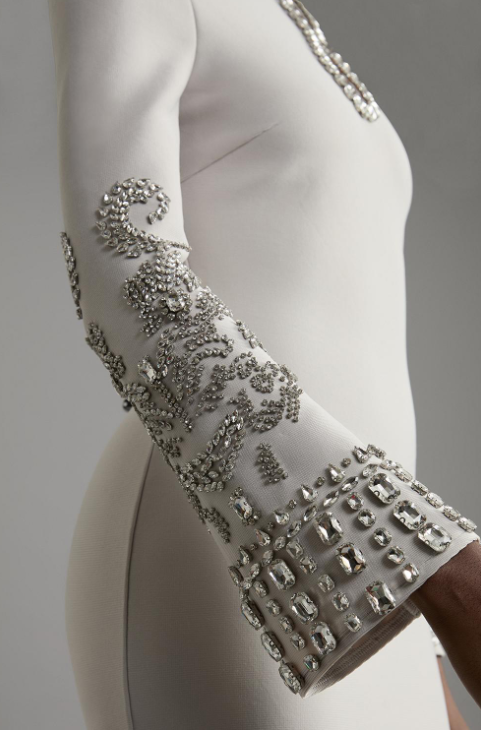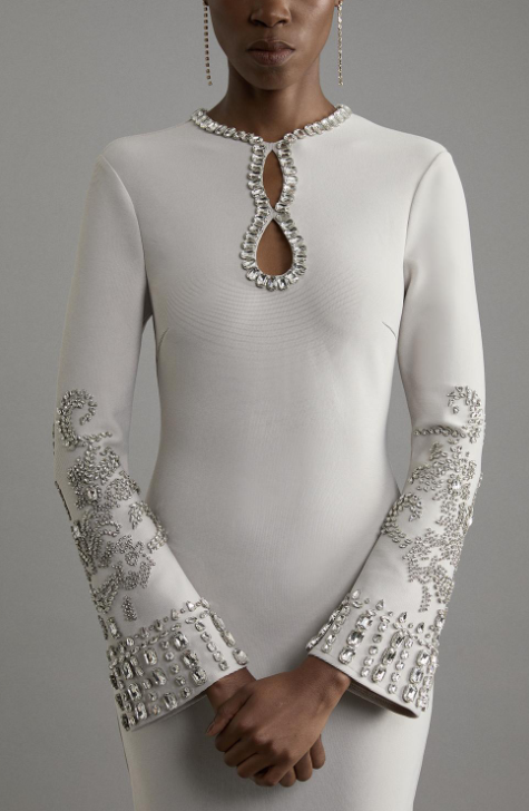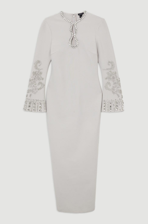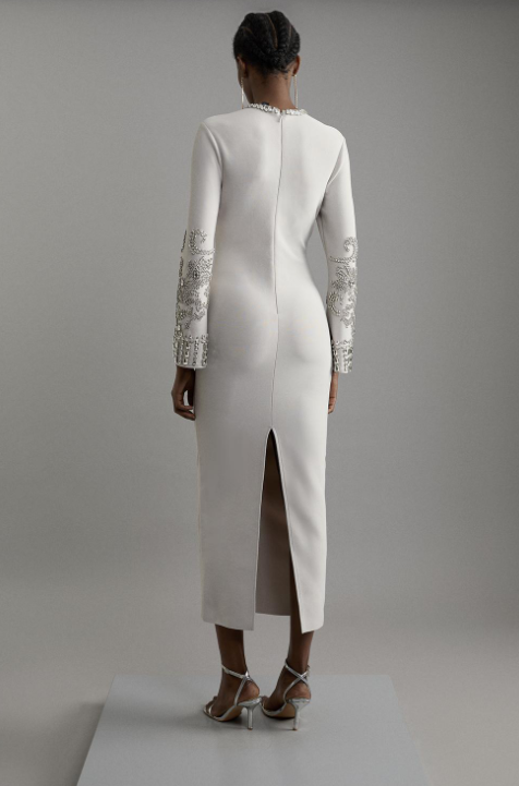 Figure Form Bandage Knit Embellished Wide Sleeve Maxi Dress