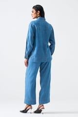 Blue Longline Hardware-Detail Button-Down Shirt