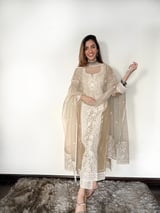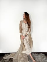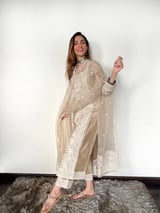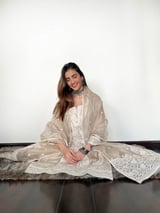 Beige Chanderi Silk Embroidered Kurta Set with Dupatta