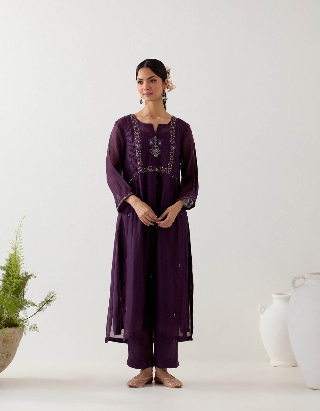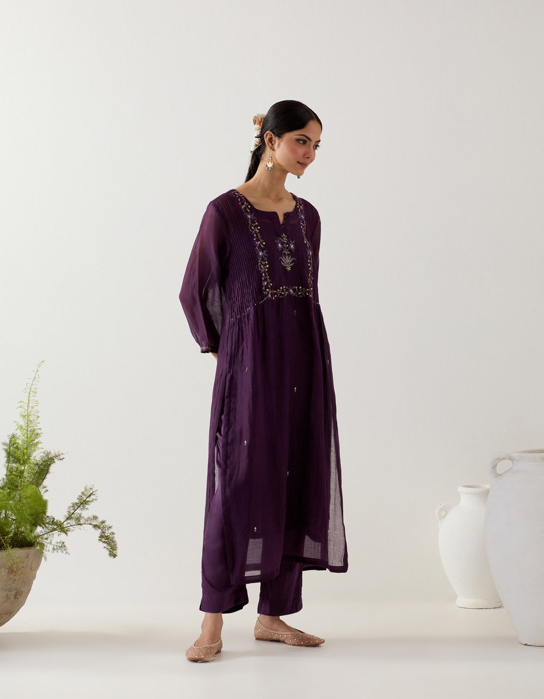 Purple Mughal Buta Kurta Set