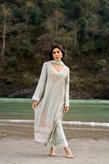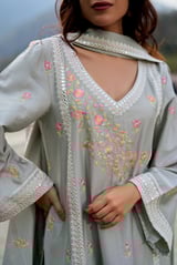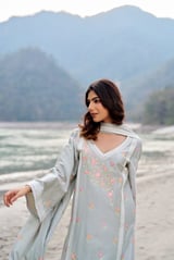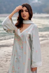 Grey Cotton Embroidered Straight Kurta Set with Dupatta