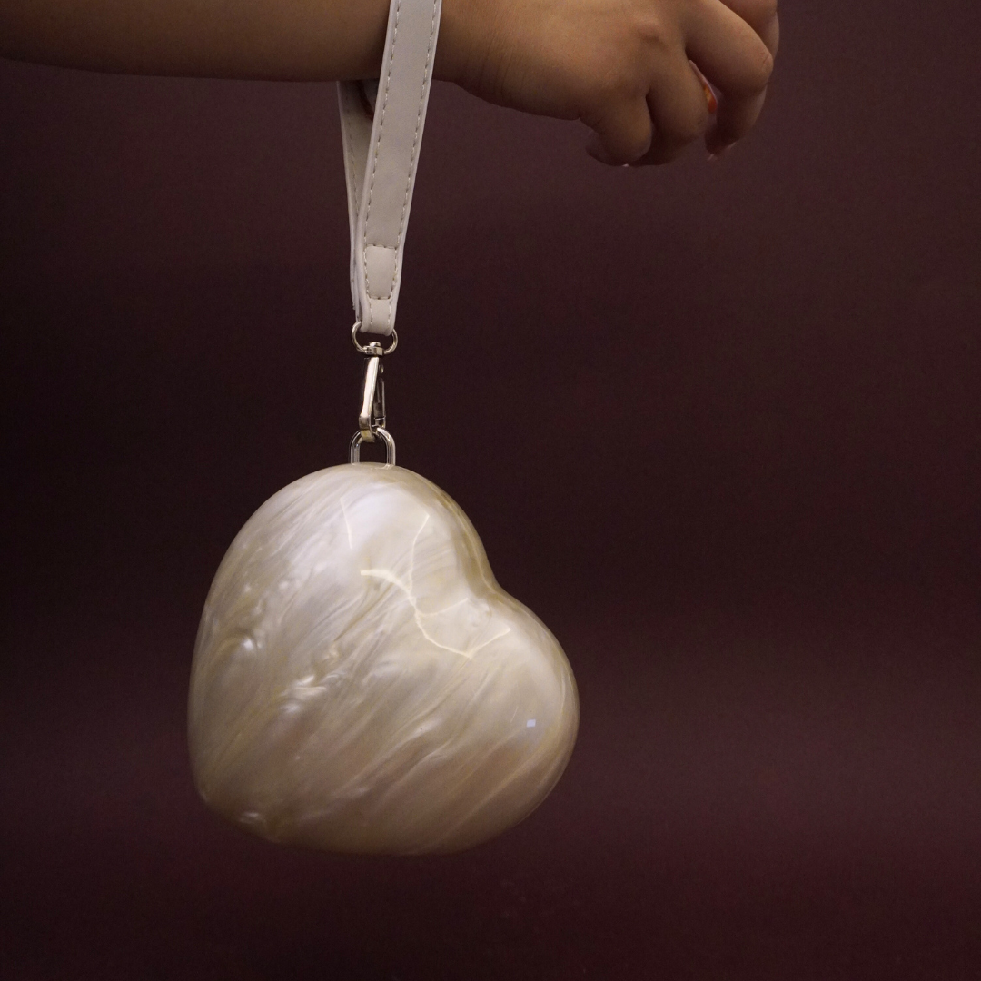 Acrylic Heart Clutch Ivory